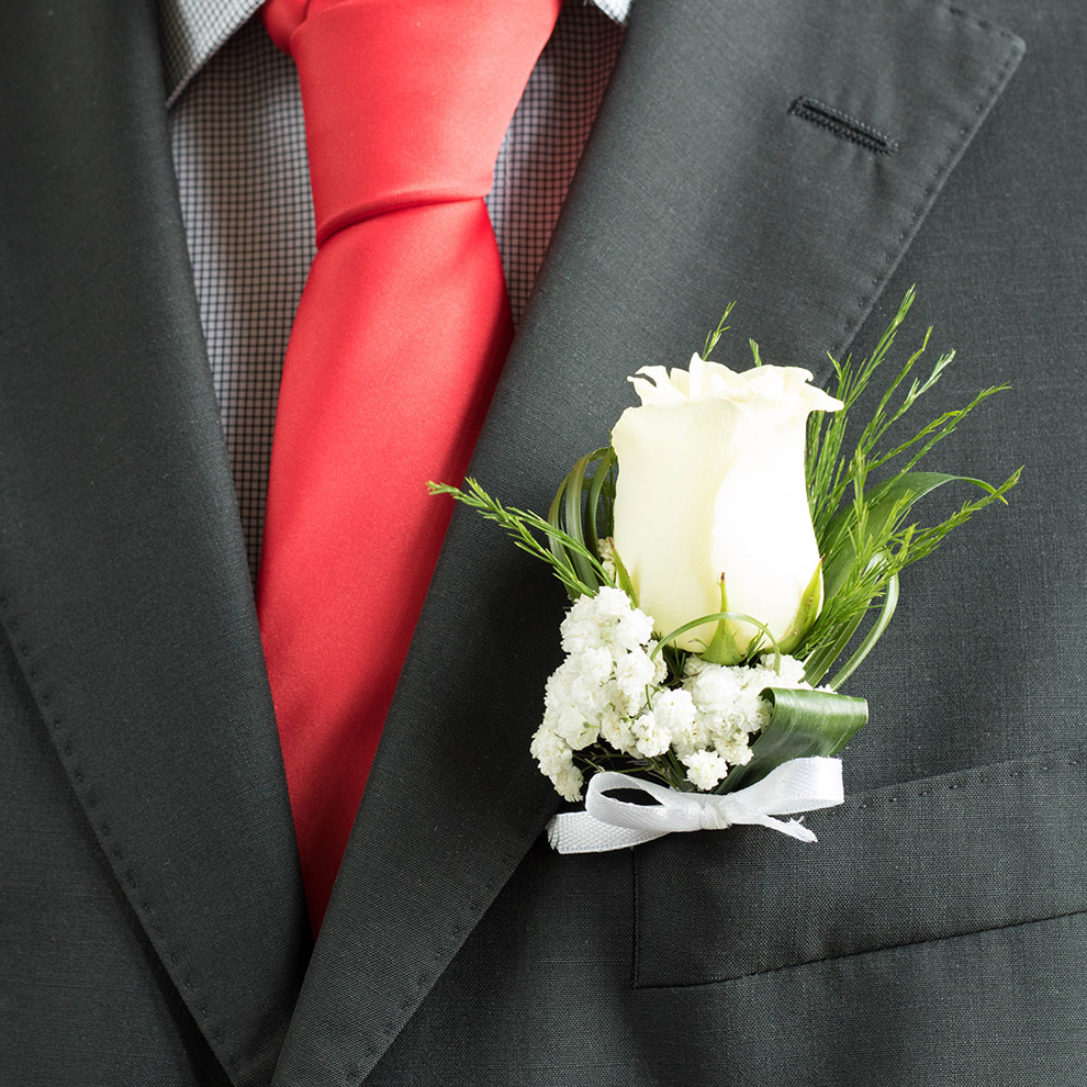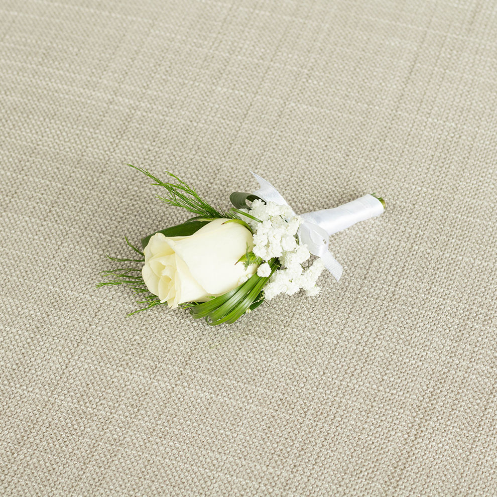 - Brilliant white roses chosen with care